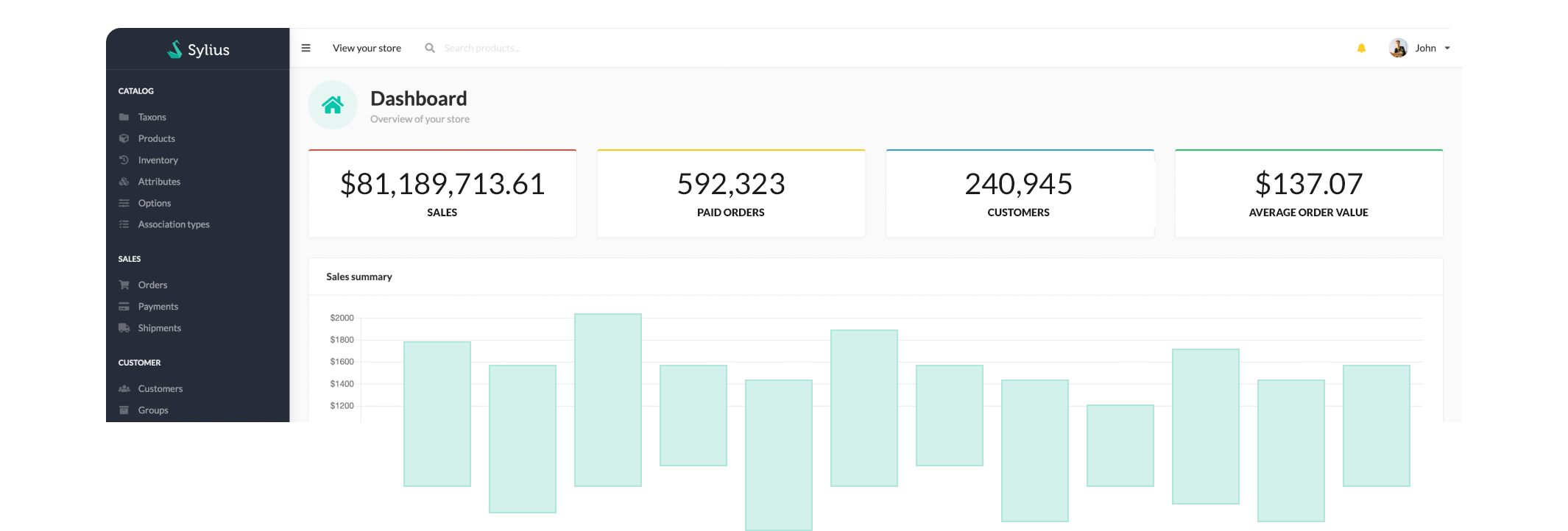 Sylius is an Open Source Headless eCommerce Platform for mid-market and enterprise brands that need custom solutions. With a modern approach to the professional development of projects, it allows the evolution of your digital stack at the pace that beats your competitors and delivers the experience your Customers deserve.
